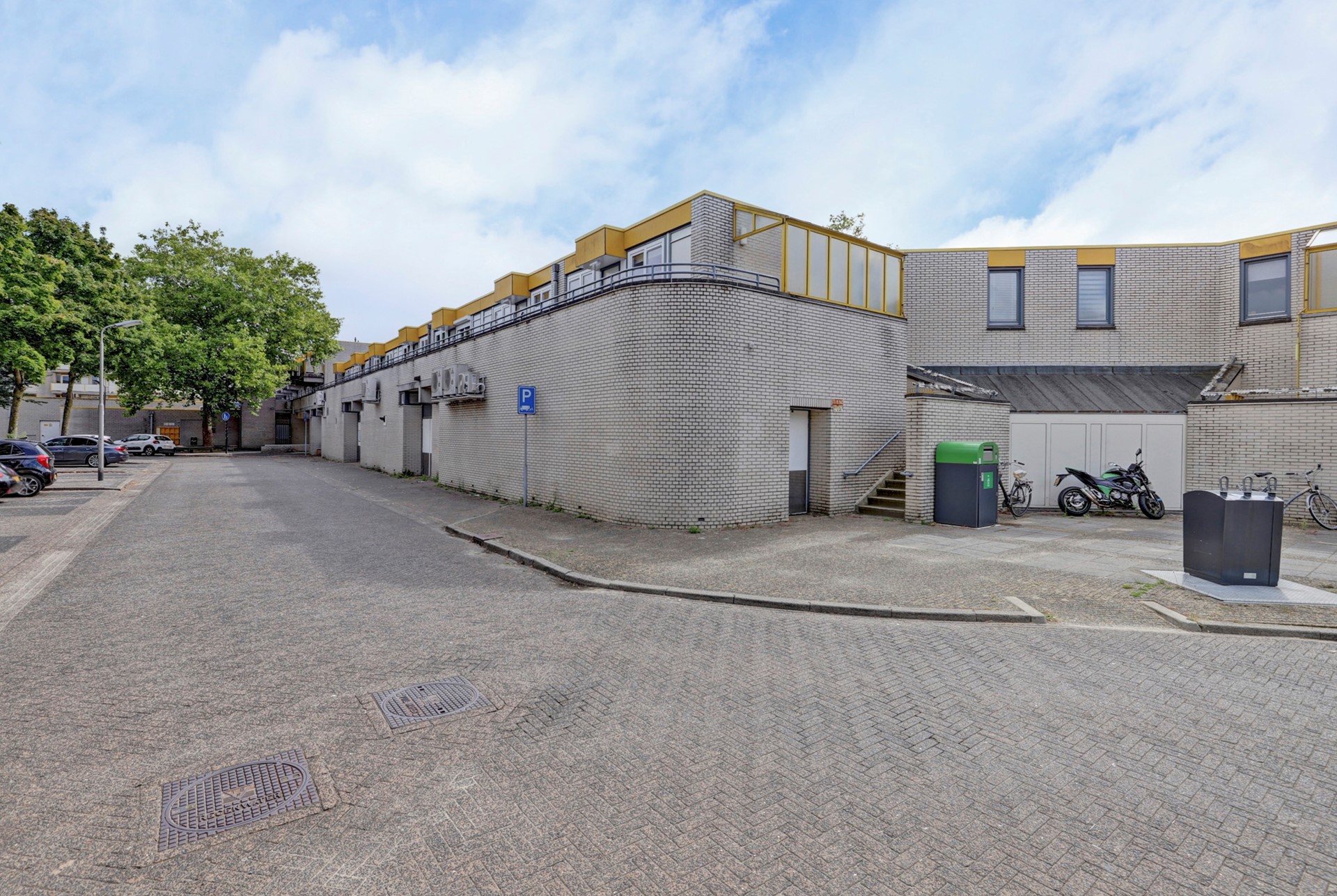 Ingang naar de bergingen. Trapopgang naar de eerste verdieping. Voldoende parkeerplaatsen in de directe omgeving (openbaar).