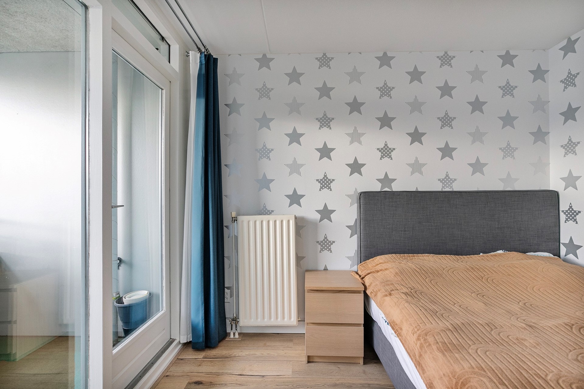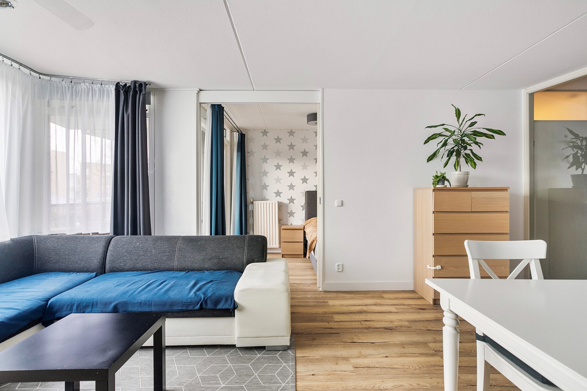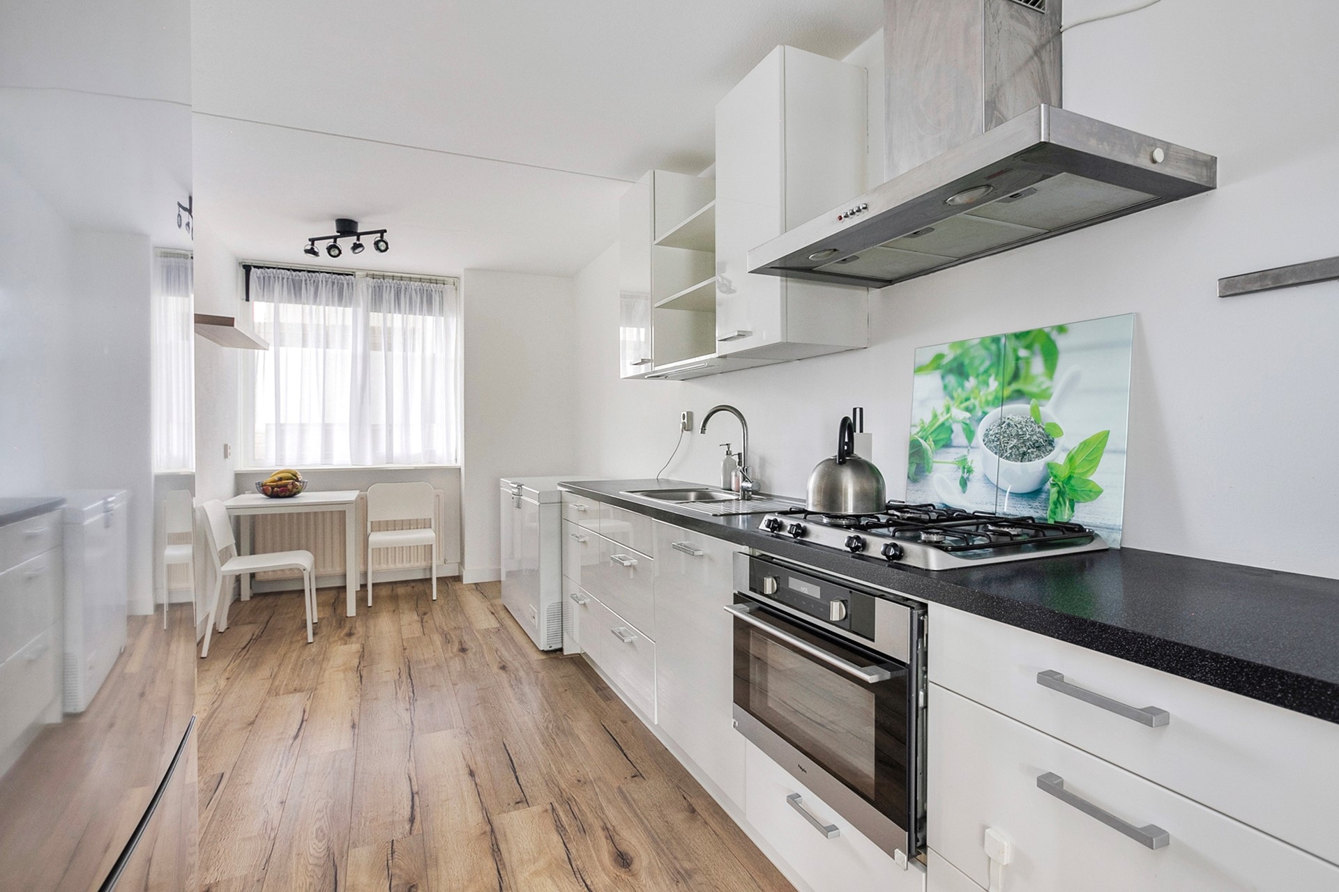 Het appartement bevindt zich aan het begin van de galerij, je hoeft dus niet ver te lopen vanaf de lift. Grote eigen berging in de onderbouw.