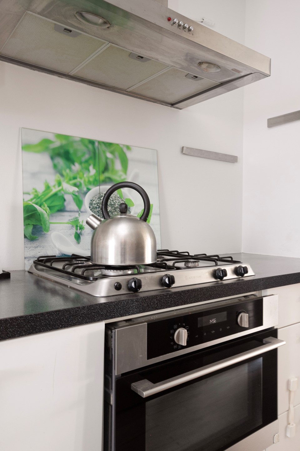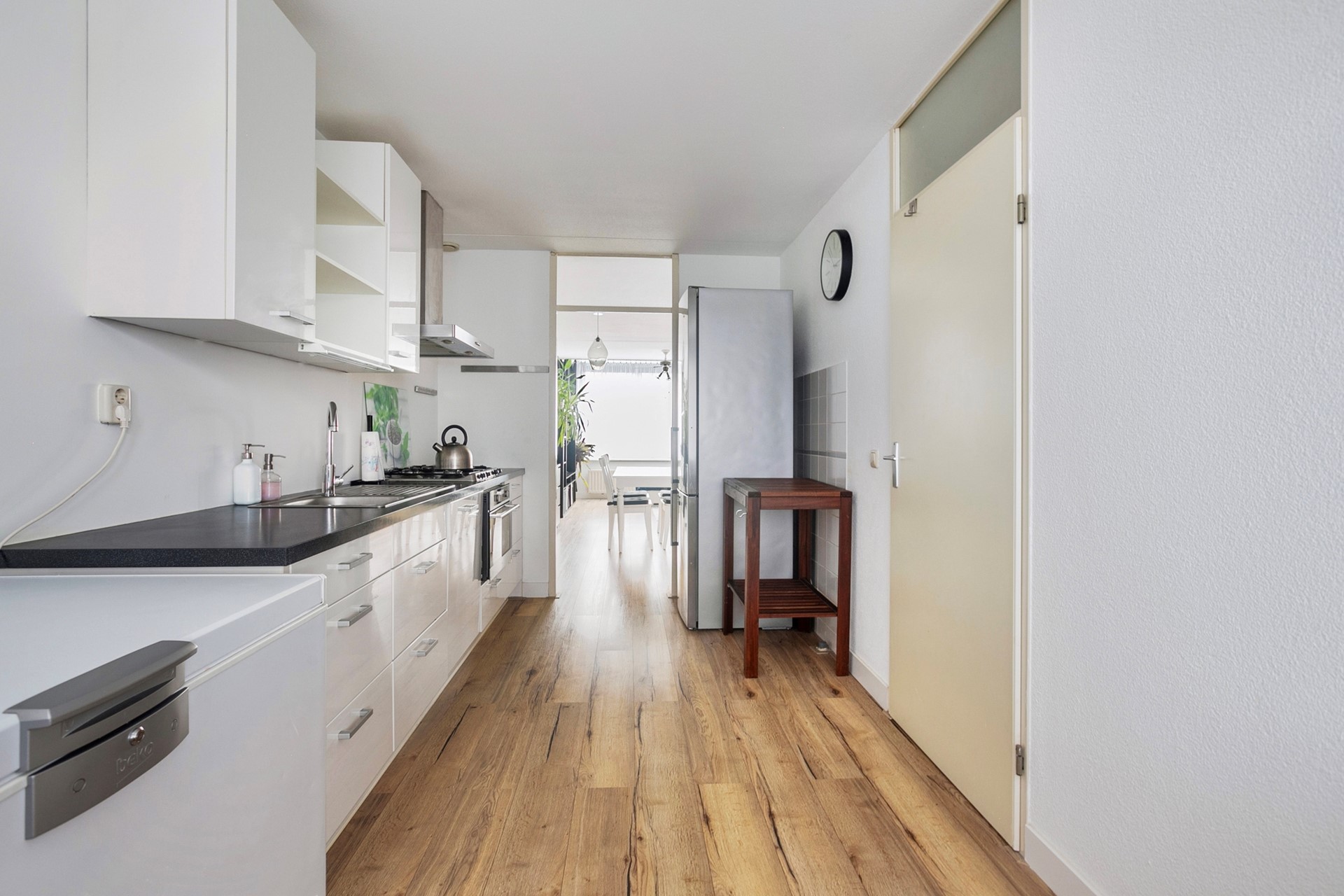 Entree, hal, ruime slaapkamer, grote moderne keuken uitgerust met een gaskookplaat, afzuigkap en inbouwoven. In het verlengde hiervan de royale woonkamer met veel lichtinval, deur naar balkon op het zuidwesten en 2e slaap/ werkkamer. De badkamer combineert stijl en functionaliteit met zijn donkere vloertegels, witte wandtegels, een comfortabel ligbad met douche, wastafel en wasmachineaansluiting. Separaat toilet en bergruimte met onder andere CV opstelling en mechanische ventilatie.
