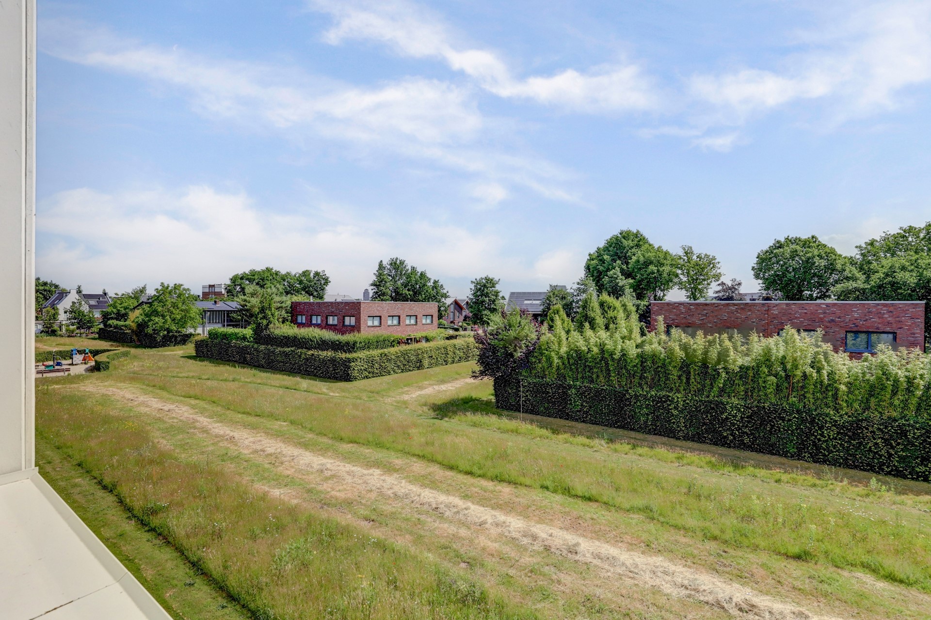 Fantastische hobbyruimte, slaapkamer of werkkamer met deur naar prachtig dakterras op het zuiden met nagenoeg vrij uitzicht over groen.